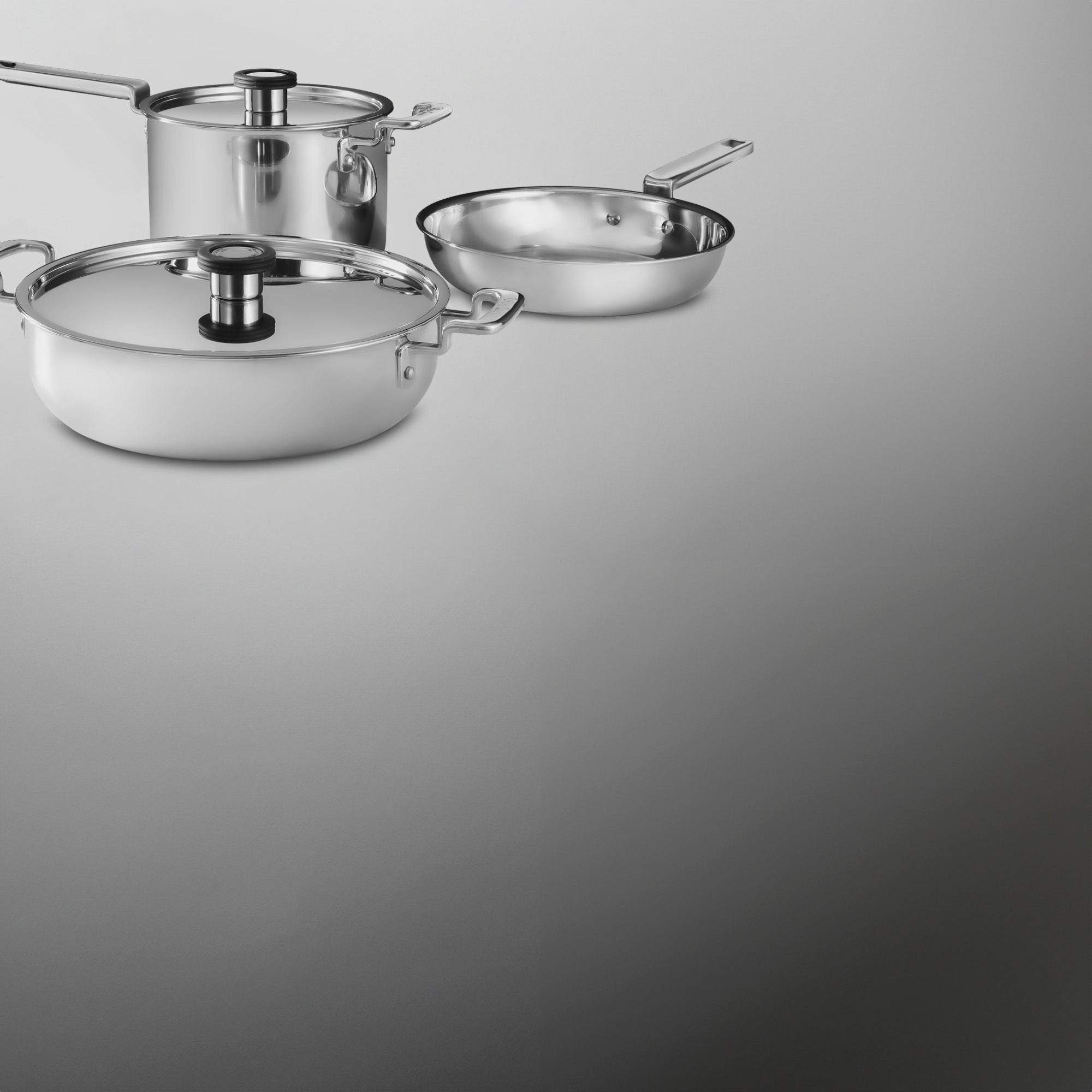 316 Series cookware also includes saucepans; a three-piece saucepan set, low casserole, and uncoated frying pans, all made from durable 316 stainless steel. The steamer inserts are made from high quality 18/10 stainless steel.