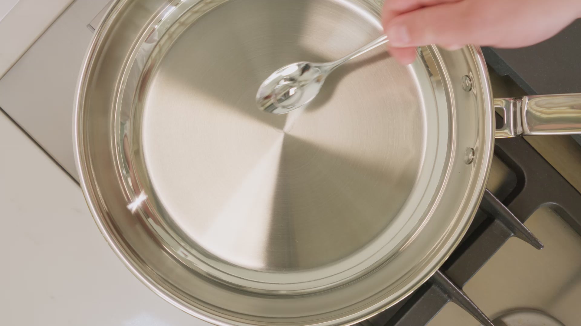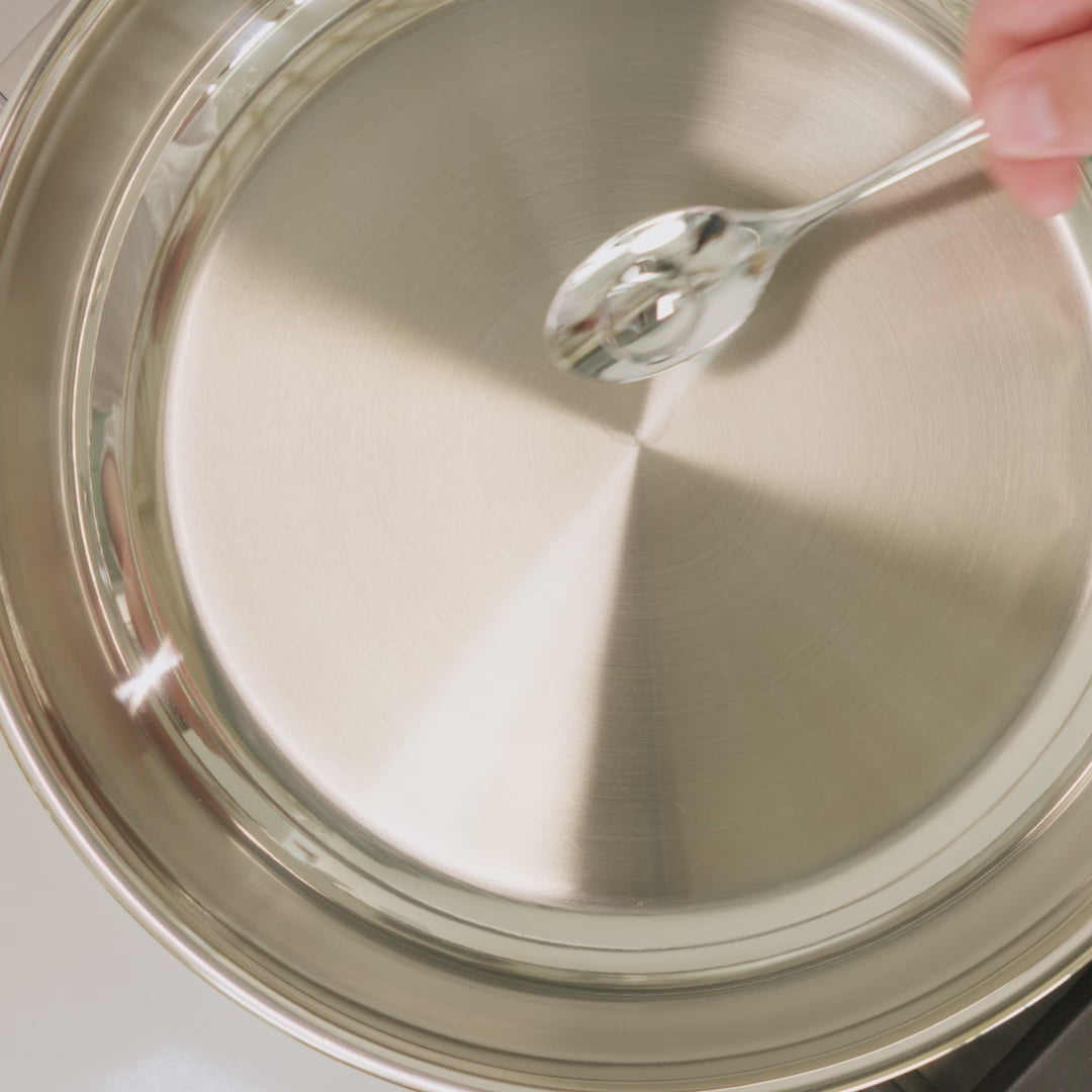 The wok features an uncoated tri-ply construction: Two layers of high-grade stainless steel fully encapsulate a responsive aluminium core that extends throughout the pan from base to rim, ensuring rapid, even heat distribution.