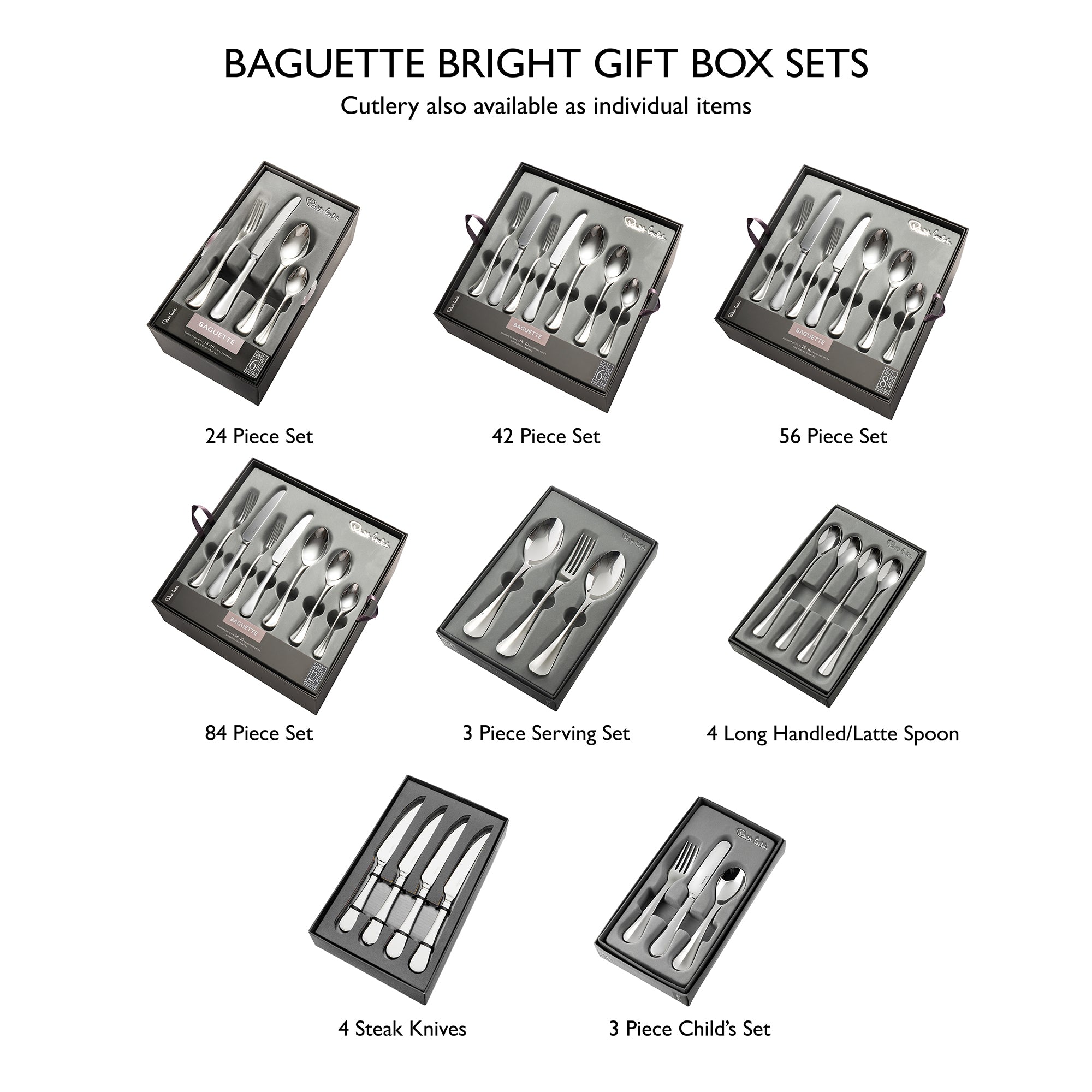 Baguette Bright cutlery is part of Cutlery Collection 3.5 - All pieces in this collection are made from best quality 3.5mm stainless steel, a slightly thinner gauge that gives each piece a lighter feel in the hand. All patterns in this collection are sold at one price.
