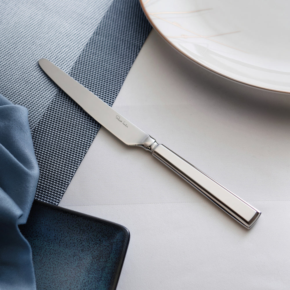 A table knife from the Art Deco inspired Fairford Bright cutlery range. Made from specially hardened stainless steel with a mirror-polished finish.