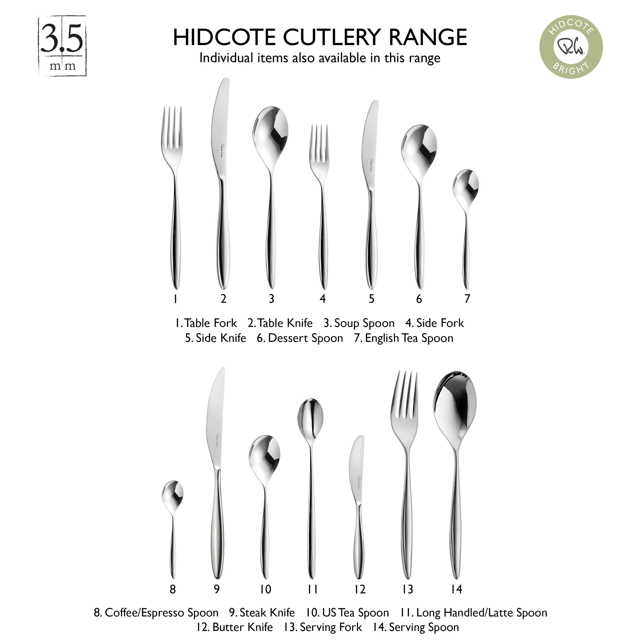 Hidcote Bright cutlery is part of Cutlery Collection 3.5 - All pieces in this collection are made from best quality 3.5mm stainless steel, a slightly thinner gauge that gives each piece a lighter feel in the hand. All patterns in this collection are sold at one price.