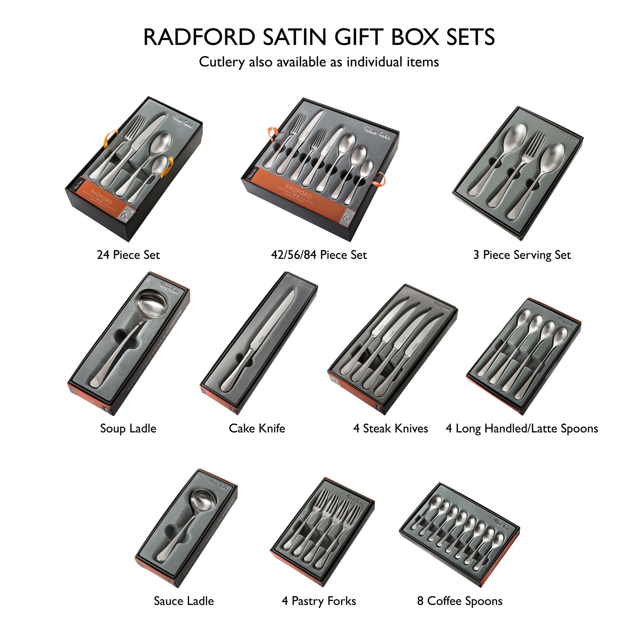 Radford Satin cutlery is part of Cutlery Collection 5.0 - All pieces in this collection are made from best quality 18/10 stainless steel, a heavier gauge which features exceptional balance and comfort. All patterns in this collection are sold at one price.